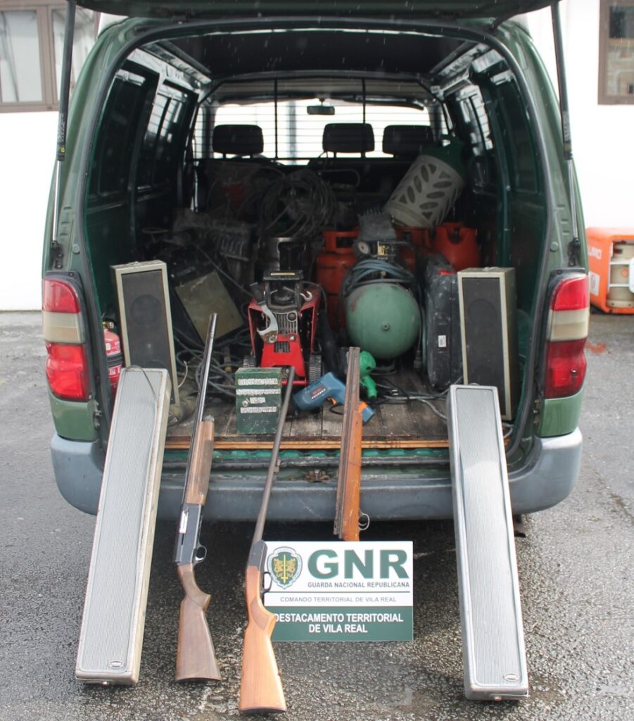 No âmbito de uma investigação por furto qualificado que decorria há cerca de três meses, foram realizadas duas buscas domiciliárias e três em veículos que culminaram na apreensão de armas e diversos artigos para construção e bricolage furtados, destacando-se: