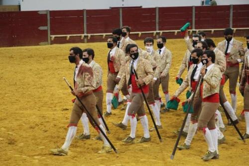 Em praça, os cavaleiros João Moura Jr., Marcos Bastinhas e Duarte Pinto frente a touros da ganadaria São Marcos. Pegou, em solitário, o grupo de Forcados amadores Académicos de Elvas, que celebra 20 anos de existência.