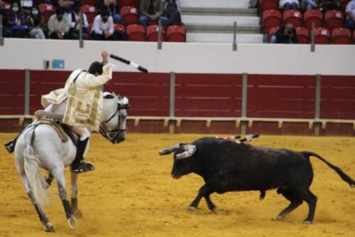 João Moura Jr. abriu as actuações com uma lide muito segura, correcta e com menos ‘aplausos’ do que a arte apresentada merecia. Bem na brega, reuniões correctas e cravagens de nível. Moura Jr. a mostrar algumas das valências que lhe são reconhecidas no toureio a cavalo nacional, perante um touro colaborante mas de escassa emotividade.
