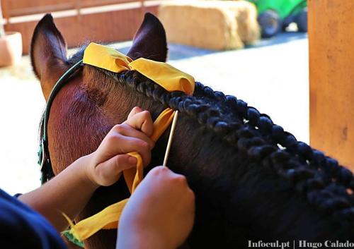 As “camas são feitas de aparas. Há cavalos que gostam de misturar um bocadinho do feno, para lhes dar um ar mais fofinho, mas são todos os dias feitas com aparas”, acrescentou antes de acentuar que “fazemos todos os dias para tentar que quando o público vem, estejam apresentadas”. Este é um trabalho que começa a ser preparado no dia anterior, pois “deixamos já as forquilhas preparadas do dia anterior, em conjunto, para irmos pegando à medida que vamos chegando. O feno é deixado junto das portas, para de manhã ser mais fácil a distribuição”.