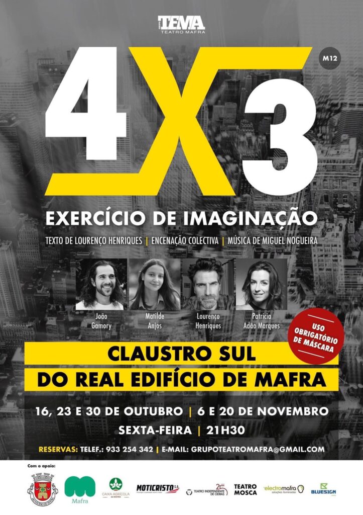 Nos próximos dias 6 e 20 de Novembro, pelas 21:30, decorrem as últimas duas apresentações de ‘4×3 Exercício de Imaginação’, no Claustro Sul do Real Edifício de Mafra.