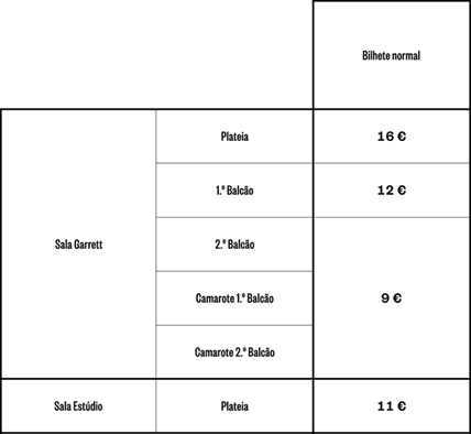 Veja abaixo o novo preçário do Teatro Nacional D. Maria II: