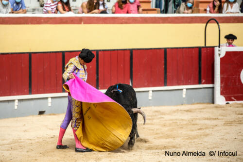 Duarte Silva é um dos mais promissores novilheiros portugueses mas no primeiro novilho não esteve triunfal. Regular no capote, bem nas bandarilhas e na muleta iniciou muito bem, com profundidade e Temple mas depois o oponente encurtou investidas e Duarte não o soube interpretar.