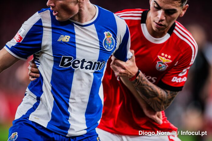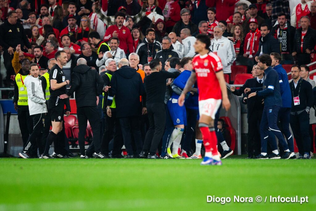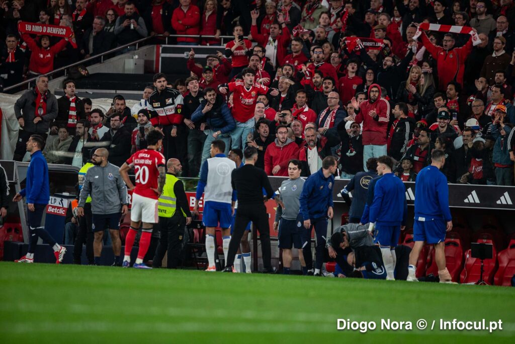 Entretanto, o Benfica procurou reagir. A equipa encarnada criou algumas situações de perigo, obrigando Diogo Costa a manter atenção na baliza portista.