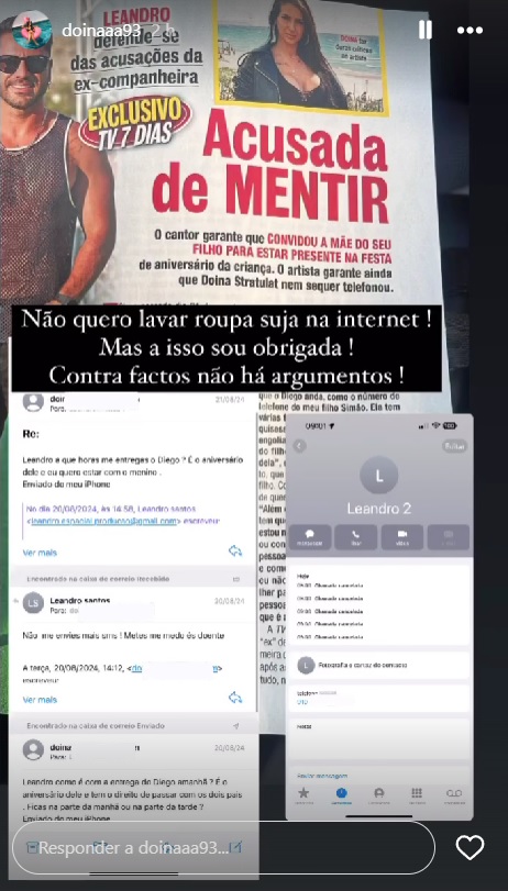 Confrontado pela TV 7 Dias com as palavras da ex-companheira, Leandro defendeu-se.