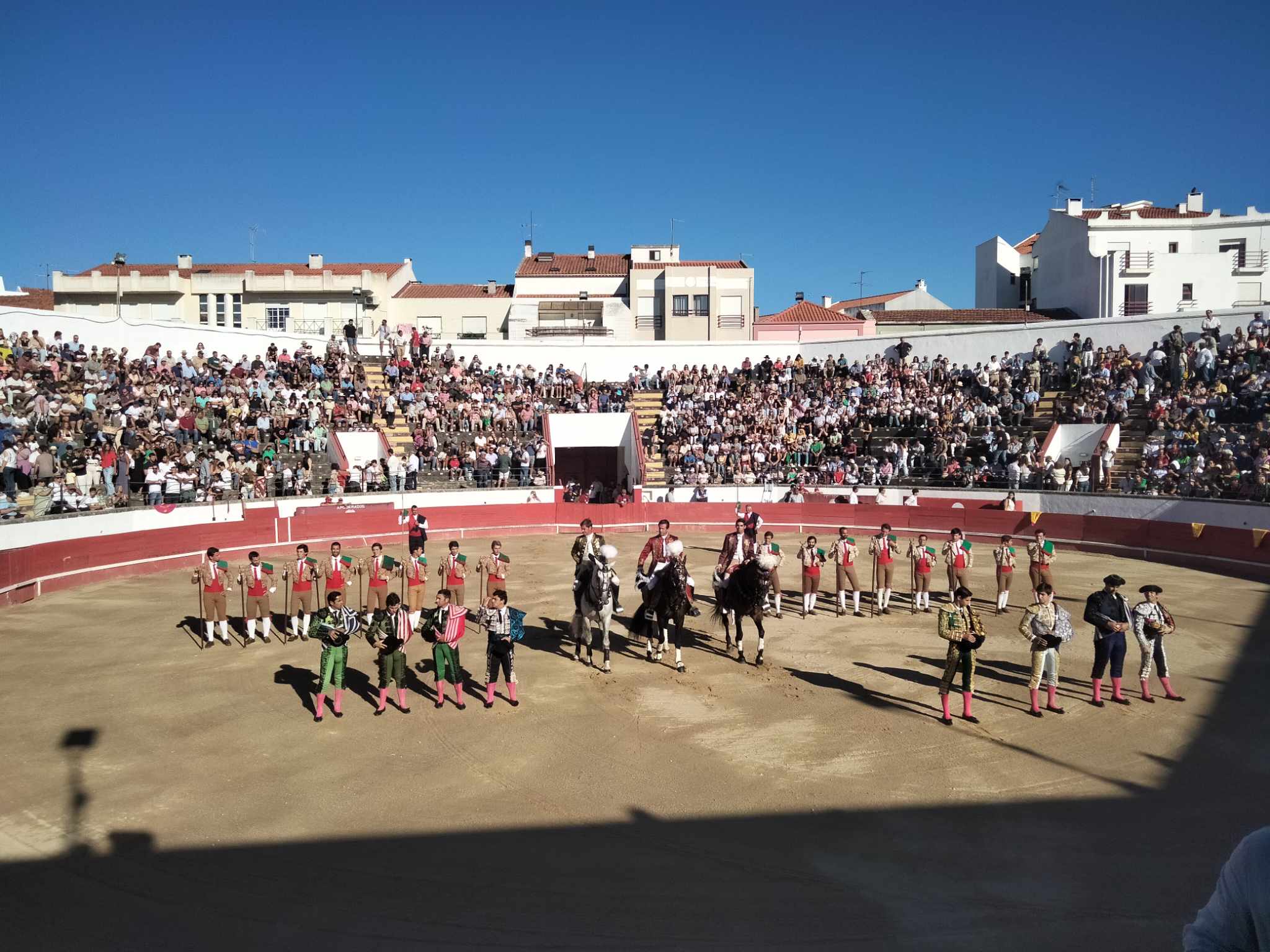 Frente a touros da ganadaria Vinhas, actuaram os cavaleiros Marcos Bastinhas, Francisco Palha e Miguel Moura. As pegas ficaram a cargo dos forcados amadores de Santarém e Caldas da Rainha.