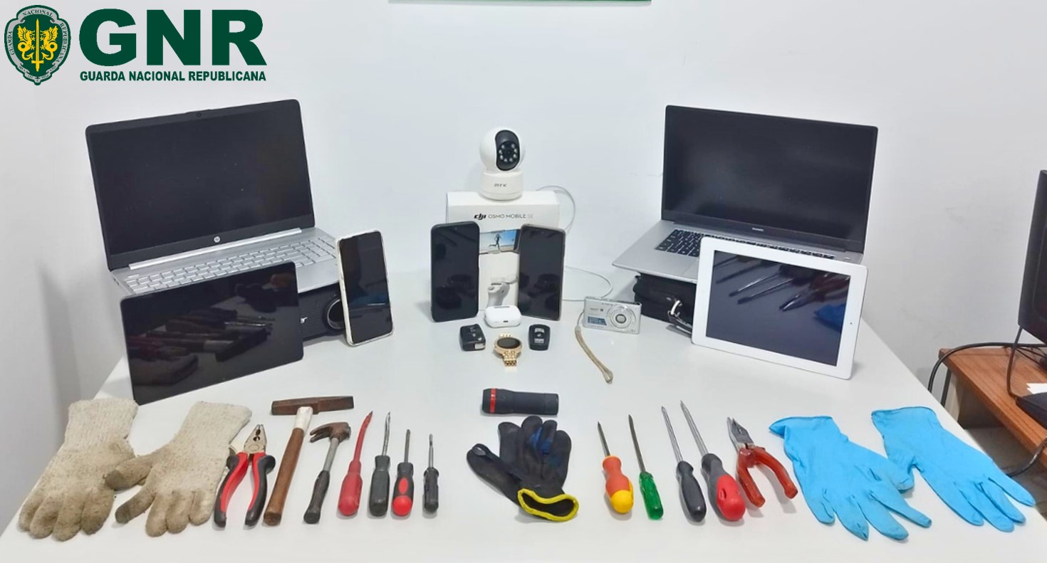 A operação policial incluiu quatro buscas — duas domiciliárias e duas em viaturas — que resultaram na apreensão de diversos objetos associados à prática dos crimes. Entre o material apreendido encontram-se três computadores portáteis, três tablets, cinco telemóveis, um autorrádio, uma viatura usada nos furtos, ferramentas e peças de vestuário.