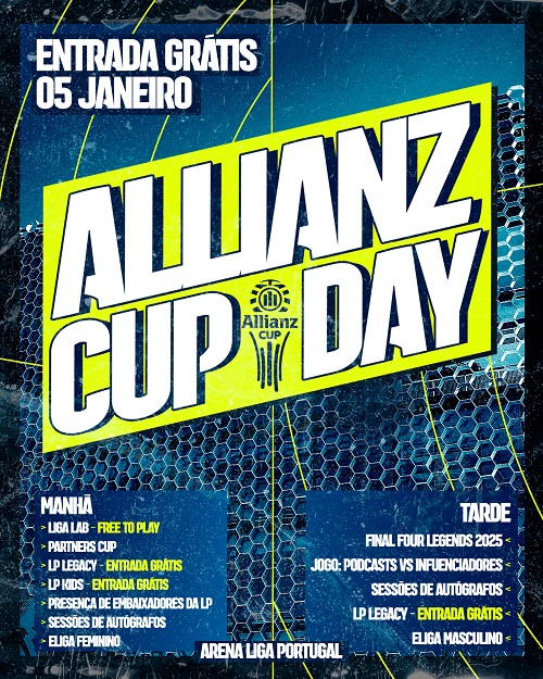 Na antecâmara da Final Four da Allianz CUP, que vai decorrer em Leiria, entre 6 e 11 de janeiro, com FC Porto, SC Braga, SL Benfica e Sporting CP na luta pelo título de Campeão de Inverno, o Arena Liga Portugal recebe no domingo, dia 5 de janeiro, a segunda edição da Taça Liga Portugal Legends, integrada no Allianz CUP DAY.