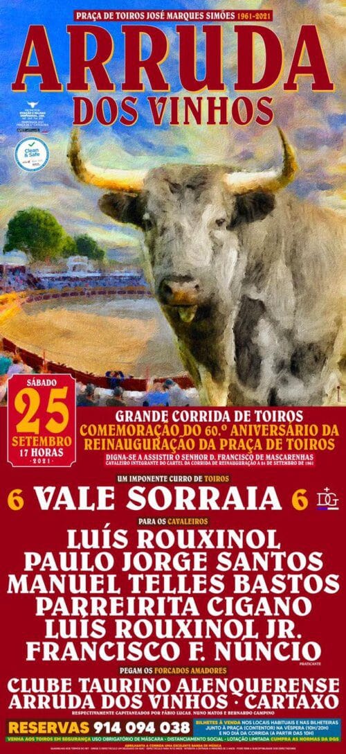 Luís Rouxinol, Paulo Jorge Santos, Manuel Telles Bastos, Parreirita Cigano, Luís Rouxinol Jr. e Francisco F.Núncio enfrentarão touros da ganadaria de Vale Sorraia.