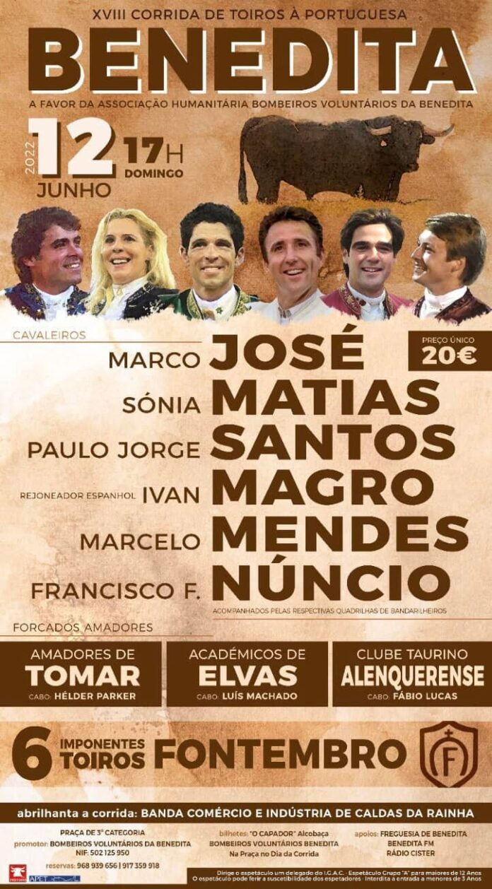 Actuam os cavaleiros Marco José, Sónia Matias, Paulo Jorge Santos, o rejoneador Ivan Magro, Marcelo Mendes e Francisco F. Núncio.