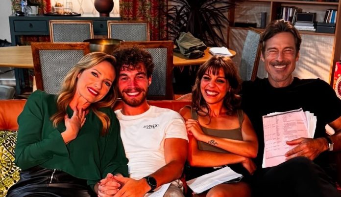 Nesta terça-feira, 10 de junho, a atriz partilhou um momento nos bastidores com Paulo Pires, Catarina Nifo e João Bettencourt, com quem tem contracenado nos últimos meses.
