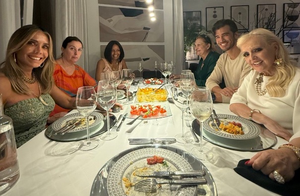 Entre os presentes estão Cláudia Jacques e Ágata, mas a ausência da namorada de Diogo, Carolina Braga, destacou-se na imagem.