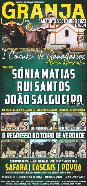 Granja: Concurso de ganadarias a 16 de Setembro, a partir das 17:30.