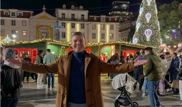 João Baião encantado com mercado de natal no Rossio, em Lisboa.