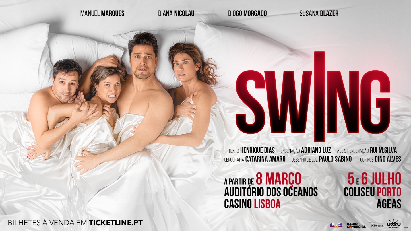 Diana Nicolau, Diogo Morgado, Manuel Marques e Susana Blazer vão estar em cena, a partir de 8 de março, no Auditório dos Oceanos, Casino Lisboa, com a comédia “SWING”. Depois de Lisboa, segue-se uma digressão por várias outras cidades do país.