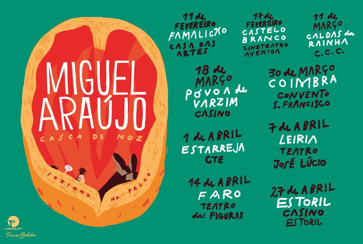 Depois da bem-sucedida digressão de celebração dos 10 anos de carreira e de apresentação do seu mais novo álbum de originais “Chá Lá Lá”, Miguel Araújo lança-se novamente à estrada, com a segunda temporada do espetáculo “Casca de Noz”.