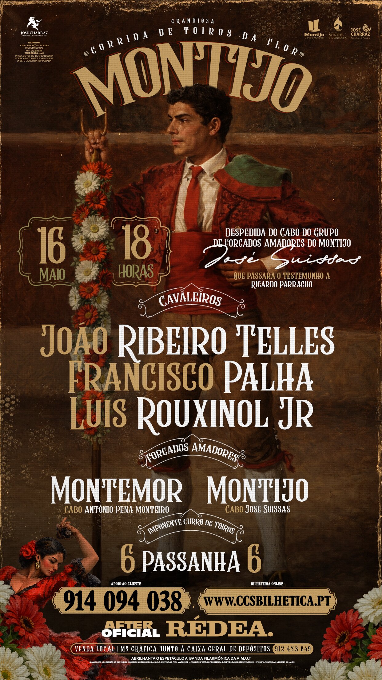 Além disso, o espetáculo fica marcado por um momento simbólico. Trata-se da despedida do cabo do Grupo de Forcados Amadores do Montijo. Como destaca o cartaz, “Despedida do Cabo do Grupo de Forcados Amadores do Montijo José Suissas que passará o testemunho a Ricardo Parracho”.