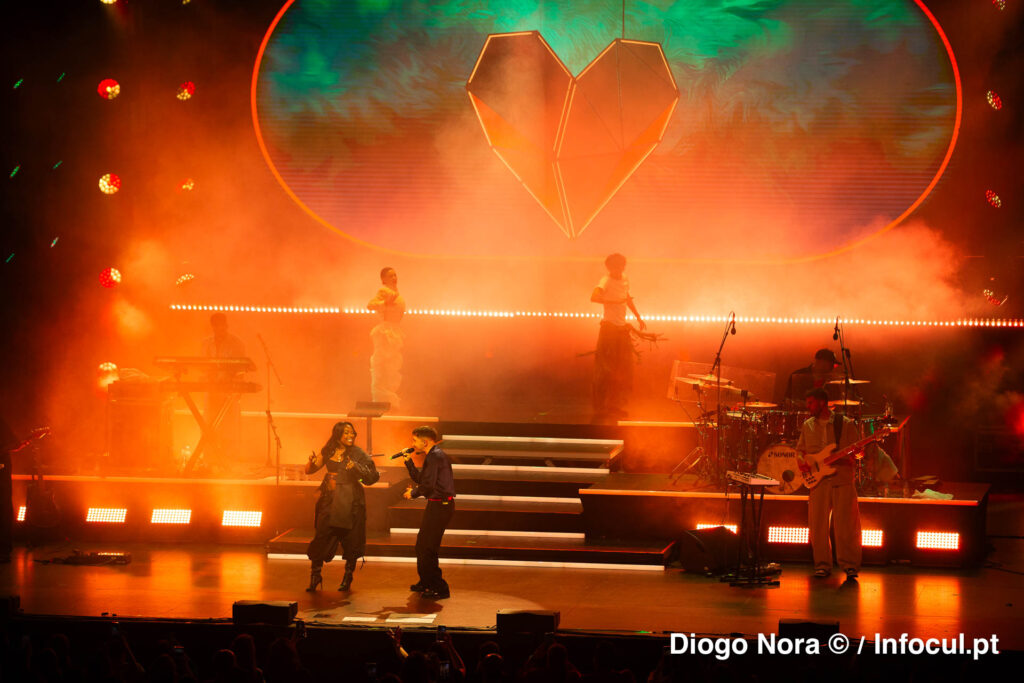 Visualmente, o concerto apresentou uma identidade clara. Um coração em palco foi mudando de cor ao longo da noite, acompanhando o tom das canções.
