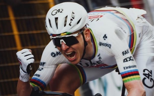 No Poggio di Sanremo, o esloveno voltou a fazer a diferença. Com várias acelerações nas primeiras rampas, conseguiu descolar Van der Poel, deixando apenas Pidcock na sua roda. O britânico resistiu a todos os ataques e os dois seguiram juntos até à Via Roma, onde a decisão ficou guardada para os últimos metros.