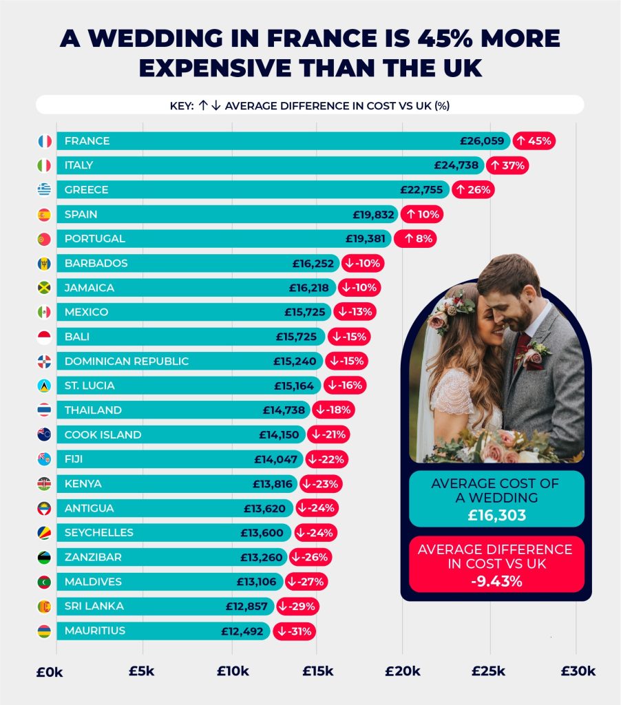 Itália, apesar de ser uma opção mais dispendiosa, mantém um enorme apelo entre os casais apaixonados, liderando também as pesquisas no Google a nível global relacionadas com casamentos de destino — com mais de 122 mil buscas no último ano. Já Bali, além do destaque no TikTok, é também o destino com mais publicações relacionadas no Instagram, ultrapassando 1,4 milhões.