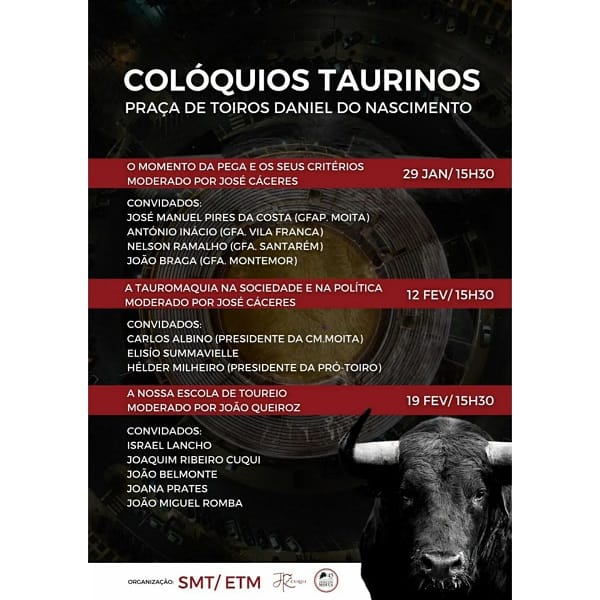 A Sociedade Moitense de Tauromaquia acaba de anunciar a realização de colóquios, na Praça de Touros Daniel do Nascimento, nos meses de Janeiro e Fevereiro.