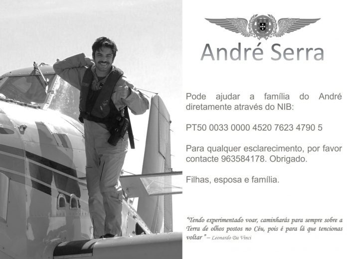 Hoje, 16 de Julho, começou a circular nas redes sociais, a divulgação de um meio para ajudar a família de André Serra, piloto que ontem morreu enquanto combatia um incêndio.