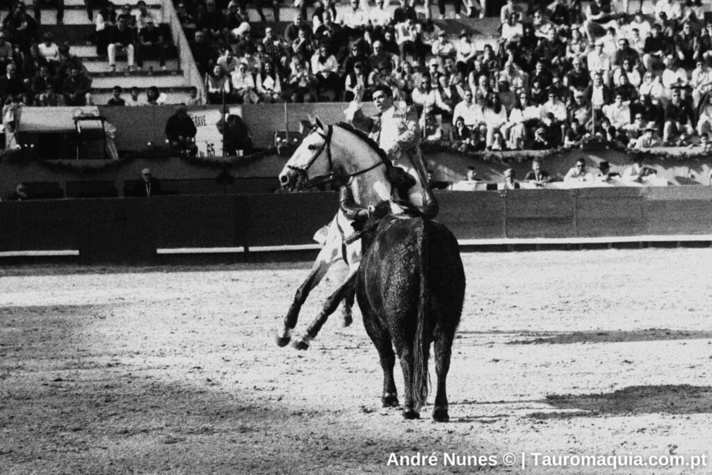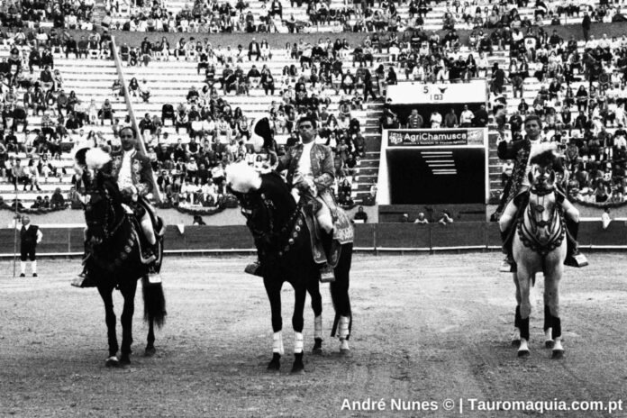 João Moura Jr. lidou o primeiro e o quarto toiros da tarde, correspondentes aos exemplares “Lusitano”, da ganadaria Veiga Teixeira, com 520 quilos, e “Marismeño”, da Murteira Grave, com 580 quilos.