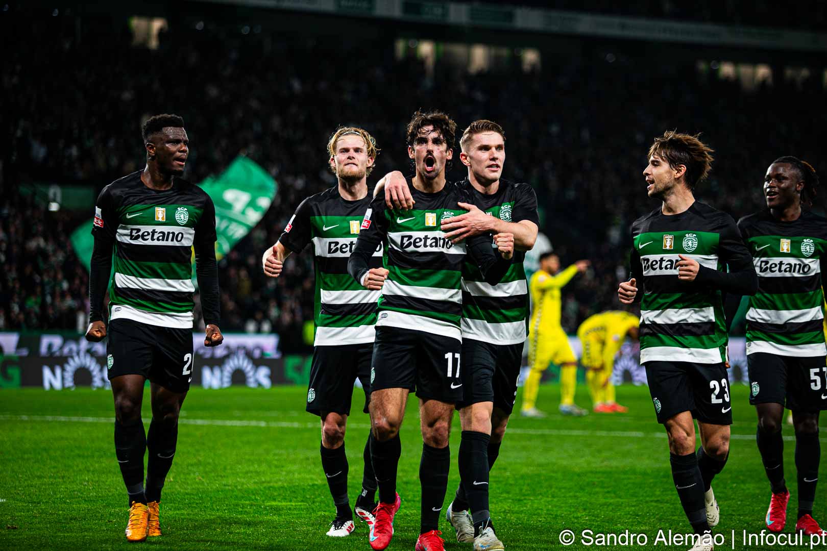 Sporting: Franco Israel, Matheus Reis, Debast, Harder, Geny Catamo, Ricardo Esgaio, Alexandre Brito, João Simões, Mauro Couto.